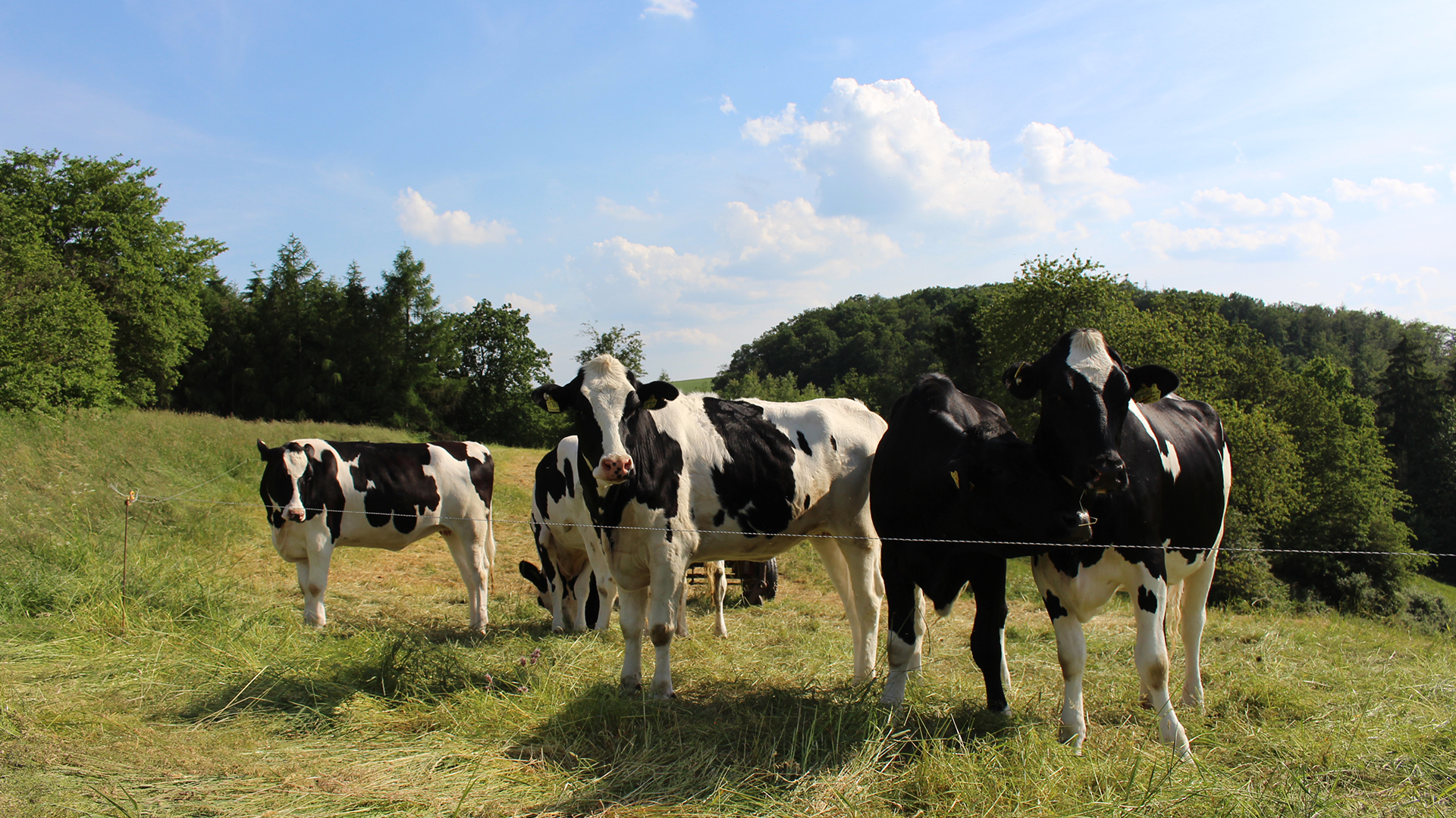 Tragende Rinder und trockenstehende Kühe haben von Frühjahr bis Herbst Weidegang in der umliegenden Gemarkung.